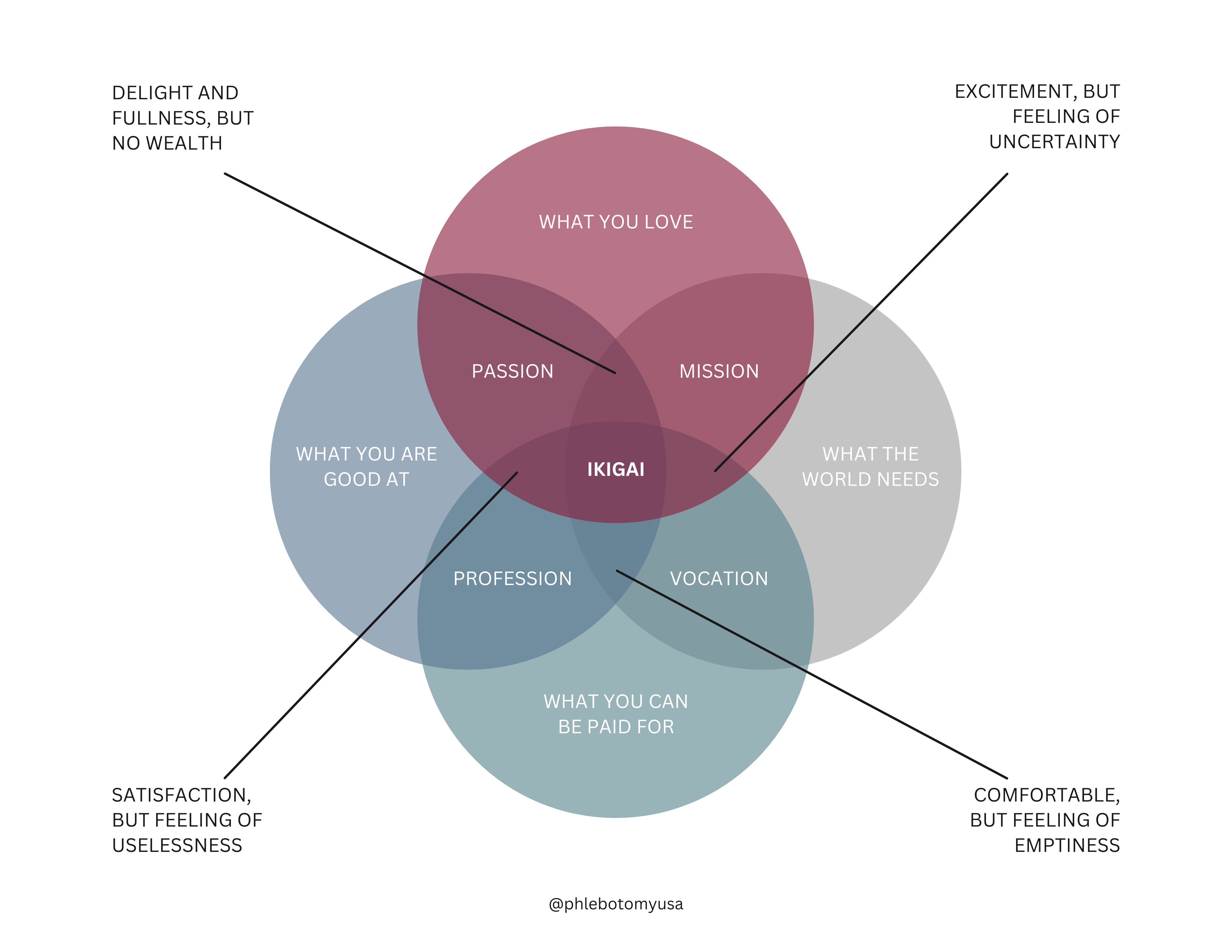 Ikigai (生き甲斐) combines two Japanese words: “iki” (to live) and “gai” (reason). It originated from the Heian period (794 to 1185) and has evolved over centuries. Unlike Western concepts of happiness or success, Ikigai is deeply personal and varies from person to person. It’s finding the sweet spot in the middle of what you love, what you are good at, what the world needs, and what you can be paid for.