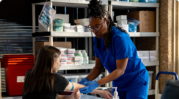 On the first day of class, you will meet your instructor and receive a textbook for guided study. Throughout the 40-hour program, you will participate in 20 hours of instructor-led discussions and presentations, and 20 hours of hands-on training. On the final day, you will demonstrate your blood-drawing skills during an in-class practical exam.